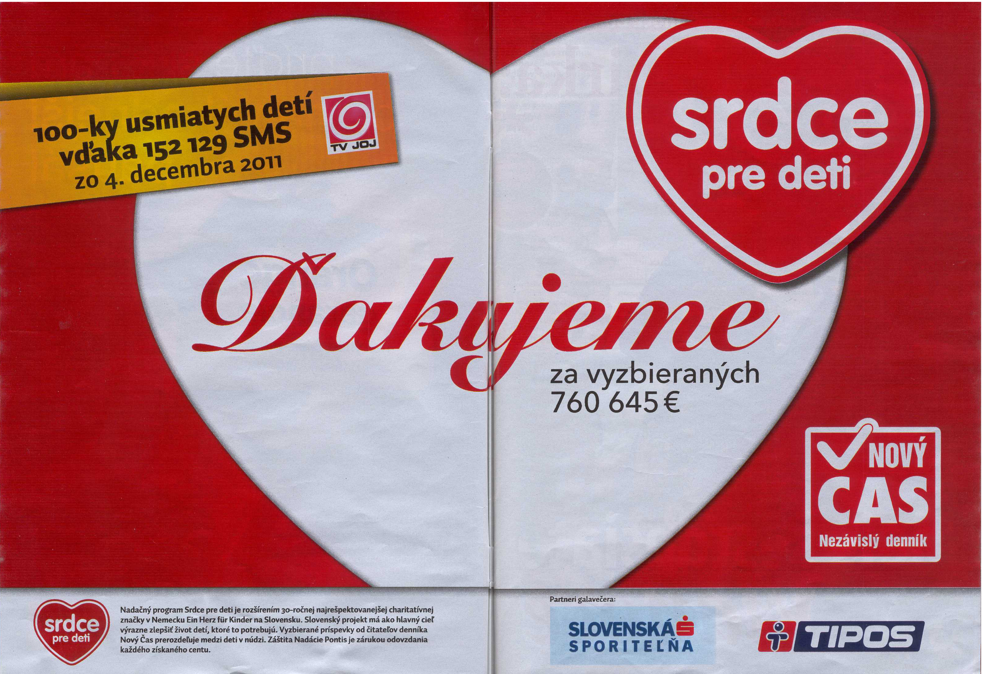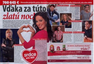 Na jednej strane sa vydavateľstvo Ringier Axel Springer Slovakia v spolupráci s Nadáciou Pontis a TV JOJ po prvýkrát rozhodli preniesť svoj niekoľkoročný dobročinný projekt Srdce pre deti zo stránok Nového času aj do televíznej podoby. Na druhej strane už po 13.-krát sa z verejnoprávnych obrazoviek prihovorila Hodina deťom organizovaná Nadáciou pre deti Slovenska.