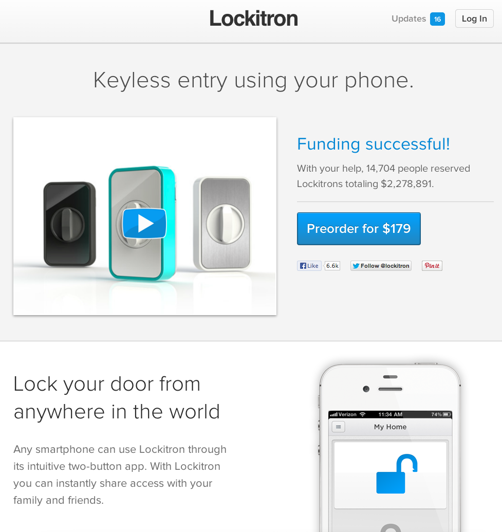 Volá sa Selfstarter a bol vytvorený startupistami, ktorí mali nápad na skonštruovanie zámku Lockitron, spolupracujúcim so smartfónmi. Pôvodne chceli získať financie cez crowdfundingovú stránku Kickstarter, no tí ich odmietli. Rozhodi sa teda skúsiť to sólo. A vyšlo im to! Pre svoj projekt získlaci cez 2,2 milióna dolárov.
